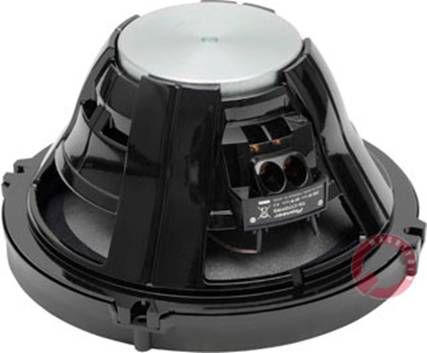 Первое на что обращается внимание при ближайшем рассмотрении системы – это корпус мидбаса - литой и совершенно глухой. Этот компонент, действительно выглядит примечательно. По внешнему виду он является узким «горшком», в котором отсутствует осевое отверстие в шайбе. И всё это несмотря на применение 2-дюймовой звуковой катушки. Возможность применения такого решения обусловлена особенностями магнитной системы – она характеризуется обращенной конструкцией, то есть место постоянного магнита - внутри катушки. Кроме того, магнит не является комбинированным (неодим-феррит), чем характеризуется подавляющее большинство подобных конструкций, а изготовлен из «чистого» неодима. Это интерметаллид NdFeB, известный всему миру. Таким образом, авторами разработки были решены многие задачи. Узкий «горшок» заметно облегчает установку мидбаса в дверь (для достижения лёгкости монтажа служит также комплектная поставка, уменьшающая и без того небольшую глубину монтажа (67 мм) на дополнительные 11 мм). Неплохая чувствительность мидбаса достигается за счёт применения мощного магнита, и это при достаточно тяжёлой подвижной системе. Кроме того, не следует забывать, что фазовыравнивающая вставка на месте выравнивающего колпака приводит к неизбежным потерям площади диффузора, По данным производителя, которым и была сконструирована данная автоакустика, частота резонанса воздуха в среднем находится в области около 70 Гц. Во избежание двойного резонанса, а также для того, чтобы улучшить структуру баса, было принято решение о снижении частоты резонанса мидбаса до 45 Гц. Для достижения данной цели существует всего два пути. Первый способ – это утяжеление подвижной системы, но тогда придётся несколько пожертвовать чувствительностью. Вторым способом является наращивание гибкости подвеса, но в этом случае мидбасу будут присущи свойства аудиофильского широкополосника, то есть с ростом подводимой мощности резко произойдёт ограничение хода катушки (в лучшем случае подвесом, в худшем - фланцем магнитной системы), которое приведёт минимум к возникновению неприятных звуковых эффектов. Инженерами Pioneer Tohoku был избран необычный путь – ввод в конструкцию мидбаса центрирующей шайбы, которая составлена как бы из двух частей. Предназначение внутренней, мягкой части - обеспечивать высокий уровень гибкости подвеса, когда его отклонения невелики. С момента, когда возможности внутренней части исчерпаны, за дело берётся внешняя часть шайбы, которая характеризуется большей жёсткостью. Если посмотреть на график, который иллюстрирует сопряжение упругих характеристик двух частей шайбы, можно сделать вывод, что всё продумано.