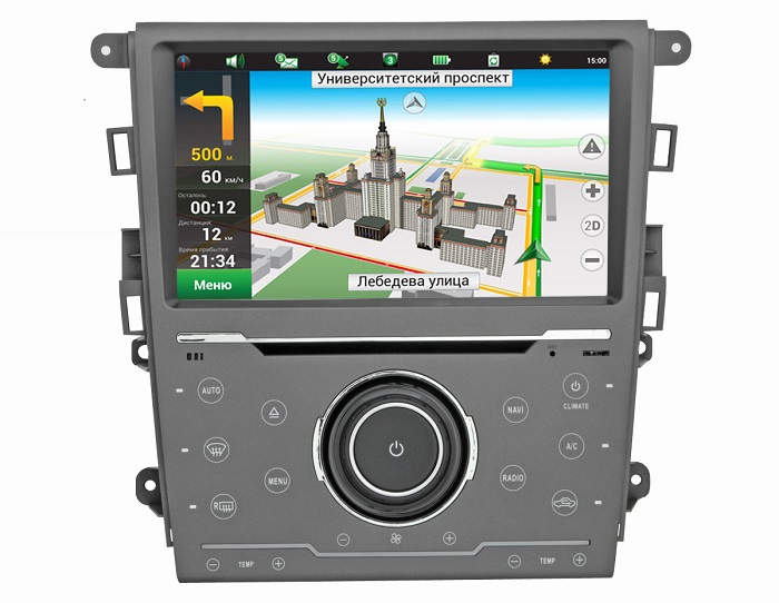 Штатная автомагнитола станет заменой альтернативной замене штатной усыновленной магнитоле на Ford Mondeo 2013. Надежный помощник и отличный образчик в сложных делах от посещений сети до воспроизведения различных форматов: mp3, DVD, CD. У вас есть изделия фирмы Apple – здесь она будет функционировать, передавая все сведения на дисплей магнитолы. Красивый экран с новейшей матрицей 8 дюймов, 16:9 TFT LCD, 800x480. Показ пробок, ТВ-тюнер, навигация от Навител. Можно подключать дополнительные устройства для Форд Мондео 2013.